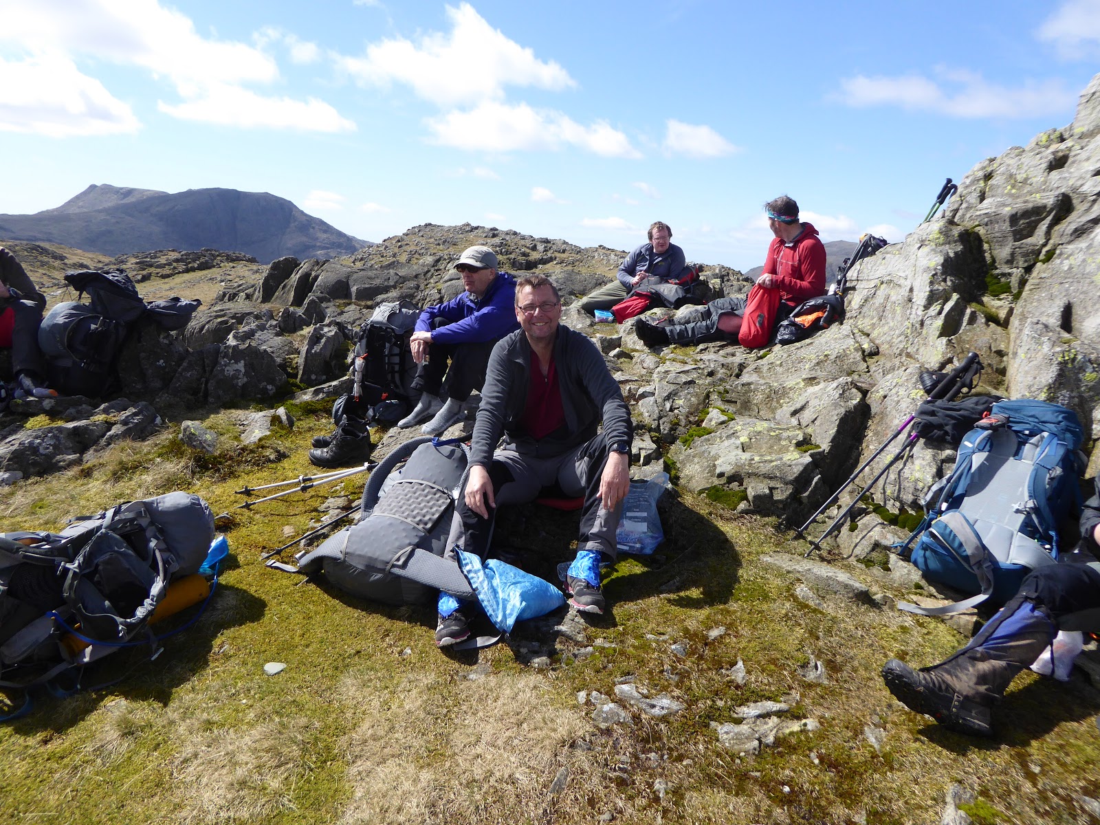 So at Seatoller we schismed again, and half of us headed into the fabulozy Combe Gill and then along the delightful path up Thornythwaite Fell and on to Glaramara. About 30 minutes before the top Johnboy, who had been walking near me, suddenly changed gear, arriving at the summit an hour before I did. I know that Einstein and the laws of physics would tell you that would be impossible but I am simply telling you what actually happened. And, in case you are wondering, by the time we were on the top our fellow Daunderers were eating the largest platefuls of fish finger sandwiches that ever came out of the North Sea at the pub in Rosthwaite.